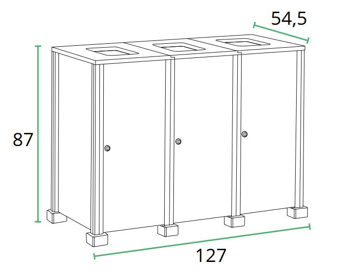 Modèle 3 (240L, 3 flux) : destiné aux environnements très fréquentés (centres-villes, gares, places publiques). Avec ses 3 cuves, il permet une séparation claire des différents déchets : plastique, papier, verre, etc.