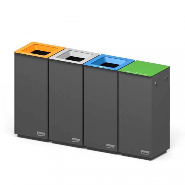 La corbeille en acier galvanisé Flexipole est conçue pour répondre aux besoins de tri sélectif dans les espaces publics, tels que parcs, rues, et centres commerciaux, ainsi que dans les bureaux et espaces de travail.