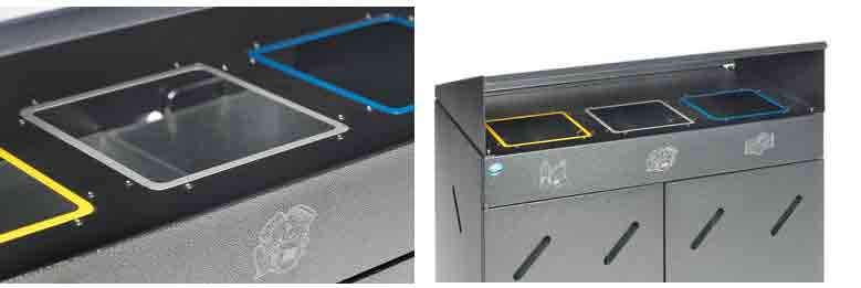 Cette station tri sélectif triple dispose de 4 pieds réglables pour un ajustage simple.