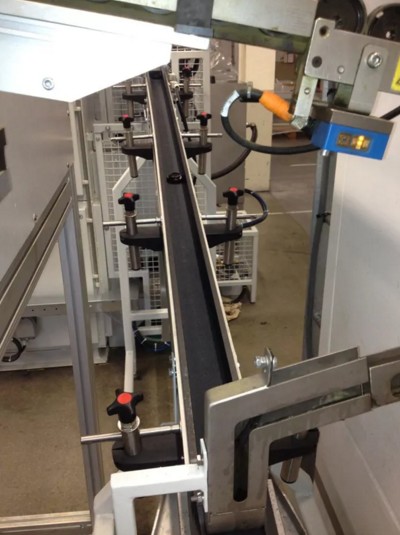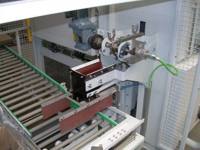 Les petites turbines sont introduites dans le support de chargement de la machine au moyen du convoyeur. Ensuite, les turbines sont chargées sur la chaîne de transport qui les déplace d’une position à chaque fois.