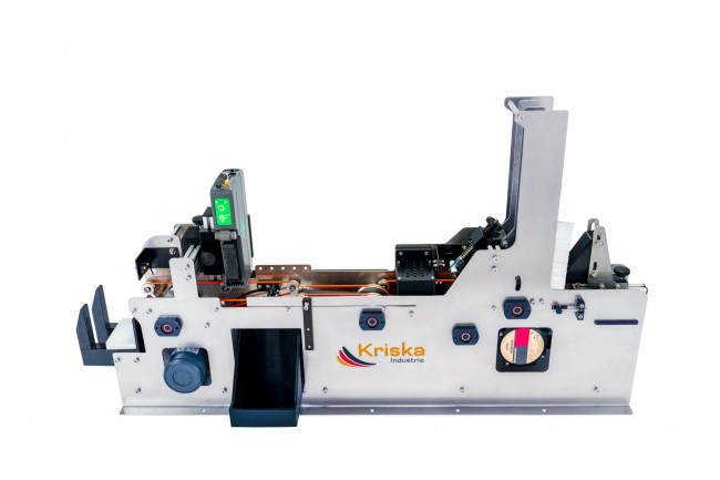 Dépileur à friction option marquage : modèle Compact, conçu pour des articles de 40x40mm à un format A4 ou plus grand sur demande et jusqu'à 5 mm d'épaisseur. Le modèle Compact permet une utilisation flexible et autonome, synchronisable avec une ligne de production.