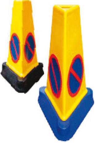 - Cône «Interdit de stationner» en polyéthylène moulé, traitement anti-UV et base lestée.