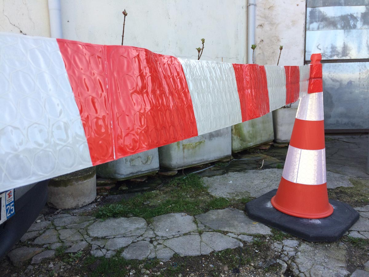 Il s'agit d'un équipement de sécurité réalisé en rouleau de film rétro réfléchissant permettant la délimitation, de manière efficace, de l’accès à une zoneinterdite ou dangereuse.