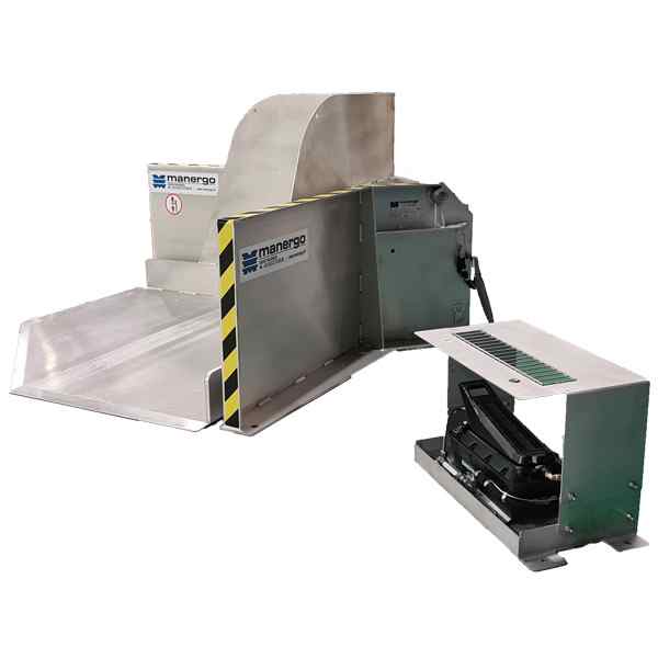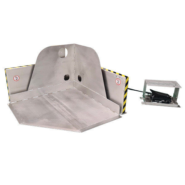 Cet inclineur permet d'incliner des caisses et conteneurs jusqu'à 30° avec une force de pression de 4/6 bars.