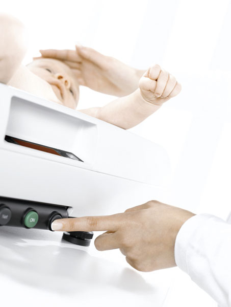 La combinaison d'un système d'amortissement spécial et de la fonction auto-HOLD garantit une pesée rapide et précise, même si le bébé gigote.