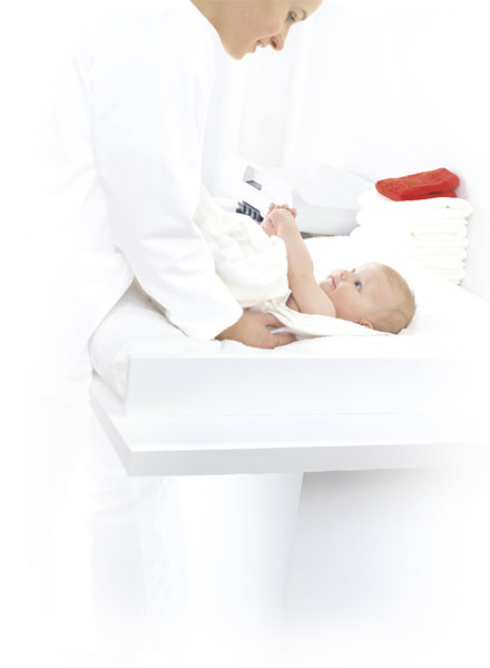 Le plateau concave ergonomique à bords arrondis et relevés facilite la pesée des nourrissons de grande taille.