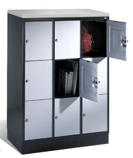 Chaque armoire à casiers verrouillables bénéficie d'un socle esthétique de 100 mm en gris noir qui surélève l'ensemble et facilite le nettoyage.