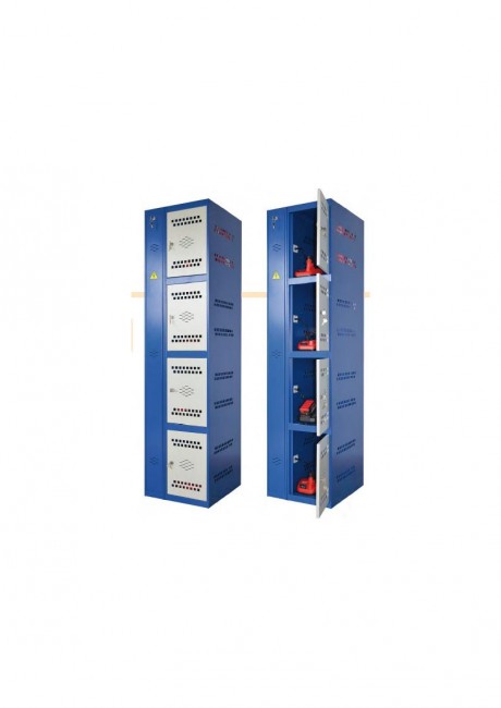 Chaque casier a une prise schuko pour charger les batteries et suffisamment d'espace pour ranger les outils en toute sécurité, ils ont été conçus avec une ventilation spéciale.