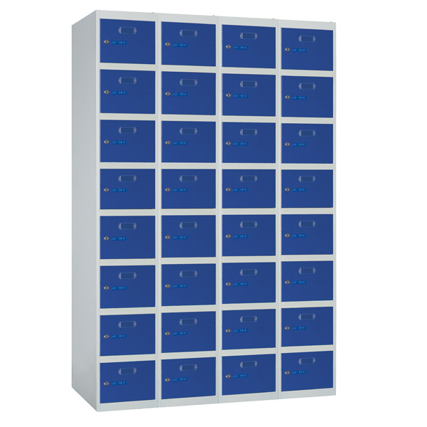 Ce bloc de 8 casiers en acier laminé est conçu pour offrir une solution de rangement pratique et sécurisée des effets personnels.