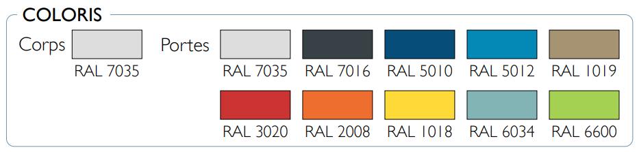 Le corps du casier est livré en gris RAL 7035, une teinte neutre qui s’intègre facilement dans la plupart des environnements professionnels.
