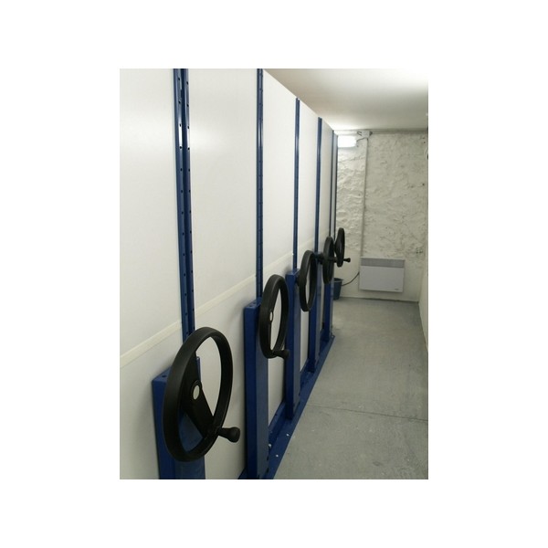 Combien de mètre linéaire de rayonnage mobile à commande mécanique peut contenir cette salle?