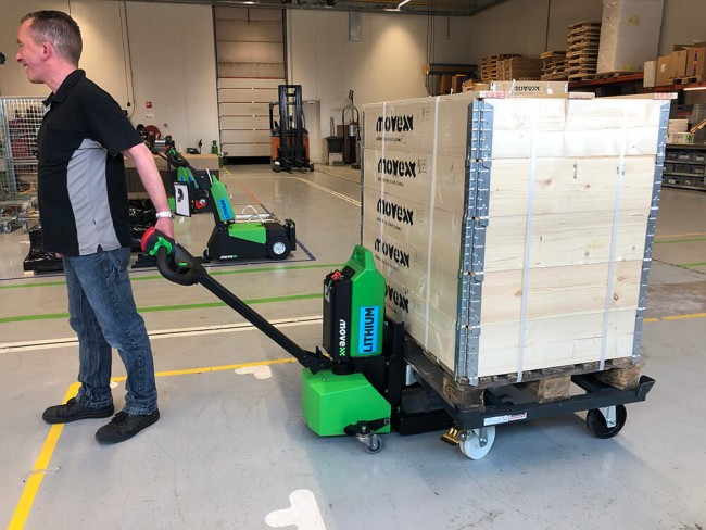 Aucun problème ! Si vous avez des chariots à 4 roues pivotantes, vous savez à quel point il est difficile de les déplacer. Les roues pivotantes rendent un chariot incontrôlable lorsqu’il est poussé ou tiré d’un côté. Mais avec ce tracteur pousseur, c’est vraiment un jeu d’enfant ! Comme les fourches sont glissées sous le chariot et que le côté est légèrement soulevé, un nouveau point de rotation est créé. Cela vous permet de déplacer des chariots (lourds) à roues pivotantes sans effort et de manière contrôlée.