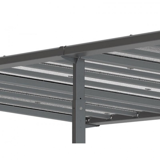 Les traverses en tubes acier 60 x 60 mm supportent efficacement la toiture et résistent aux charges de neige.