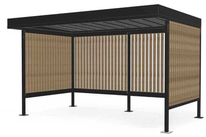 L'association de l'acier et du bois naturel confère à cet abri un aspect esthétique qui s'intègre parfaitement dans les espaces urbains et paysagers, tout en offrant une solution de stationnement fiable.