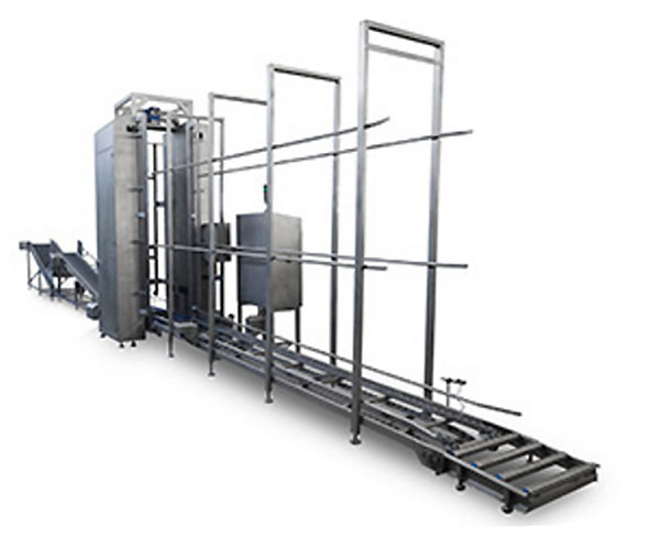 Ce désempileur automatique facilite la gestion de bacs en industrie alimentaire.