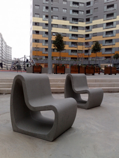 Réf. TC : 543363156Fauteuils publics en béton Chaise 800 460 Noir Béton A poser ou à ancrer avec tiges métalliques 310