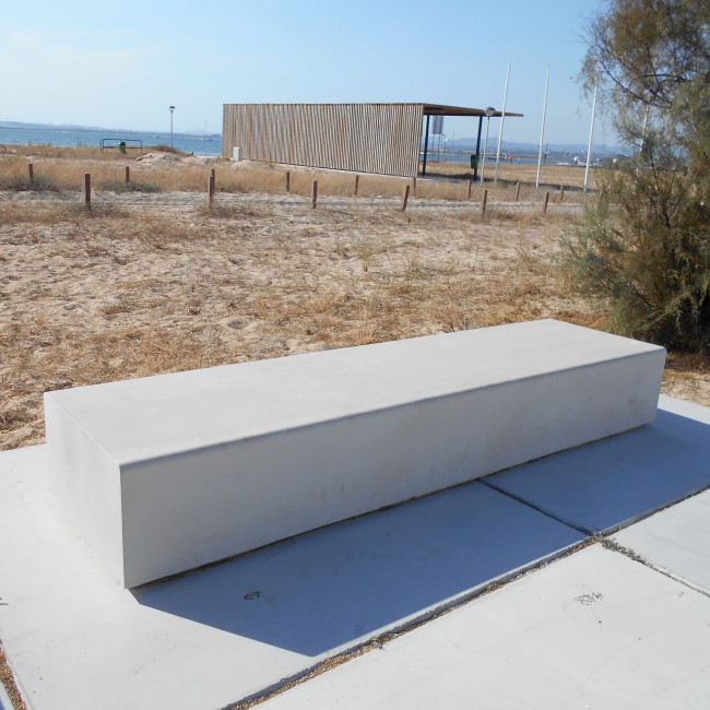 Besoin de 10ml banc béton monobloc finition lisse, traitement anti graffitis, résistant au gel, arrêtes chanfreinées, assise en bois composite.