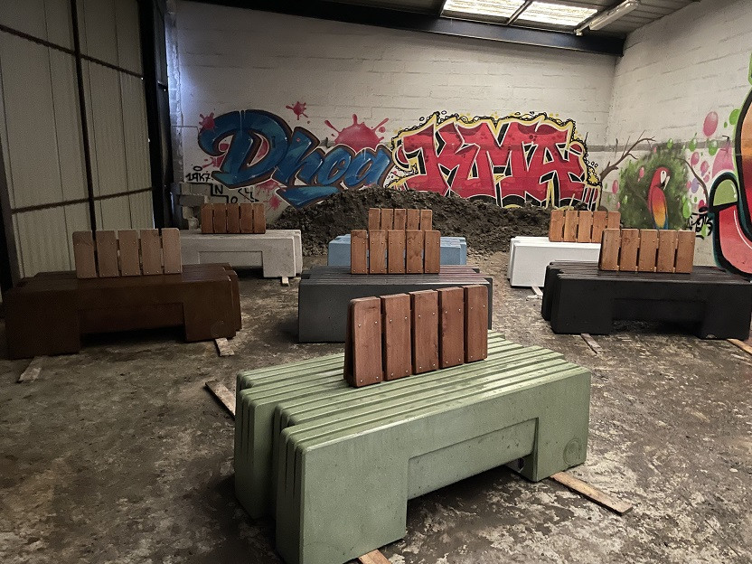Ce banc public en béton de terre est conçu pour répondre à deux besoins essentiels de l'environnement urbain moderne.