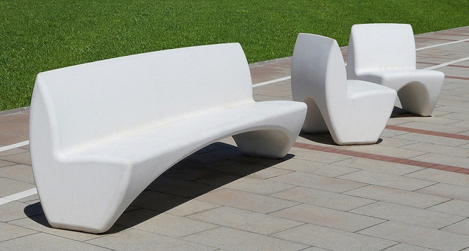 Cette chaise individuelle en béton est conçue pour fournir confort à l'utilisateur.