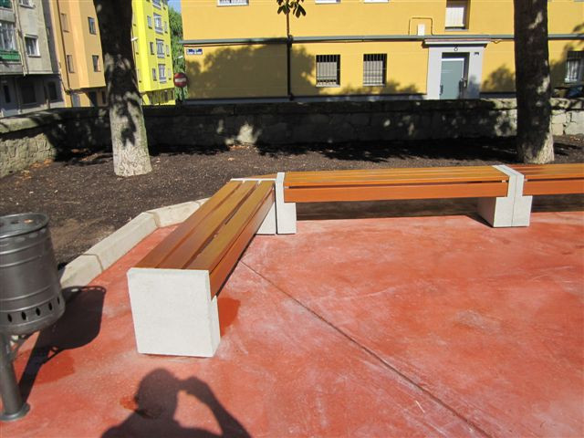 Fourniture de banquettes en béton finition décapé et hydrofugé, assises bois non exotique, PEFC, dimension entre 1,80m et 2,00m de long, largeur 0,45m. Ces banquettes ne seront pas de style blocs parallépipèdes rectangle mais seront composés de 2 pieds béton et d"une assise béton surmonté d"une assise bois (vide sous les bancs pour mieux voir l"arrière plan et poser ses pieds sous le banc). Fourniture de bancs en béton finition décapé et hydrofugé, assises et dossiers bois non exotique, PEFC, dimension entre 1,80m et 2,00m de long, largeur 0,45m. Ces bancs ne seront pas de style blocs parallépipèdes rectangle mais seront composés de 2 pieds béton et d"une assise béton surmonté d"une assise bois (vide sous les bancs pour mieux voir l"arrière plan et poser ses pieds sous le banc).