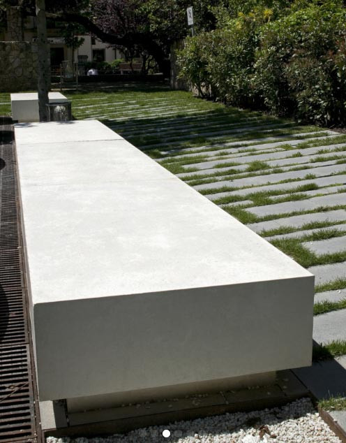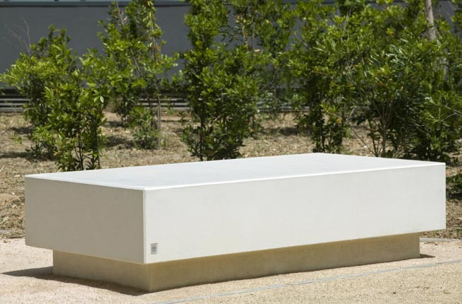 Ce banc public modulable en béton est conçu pour l'agencement des espaces.