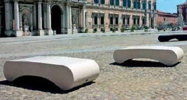 banquette monobloc sans dossier est réalisée entièrement en béton classique associé à du fer.
