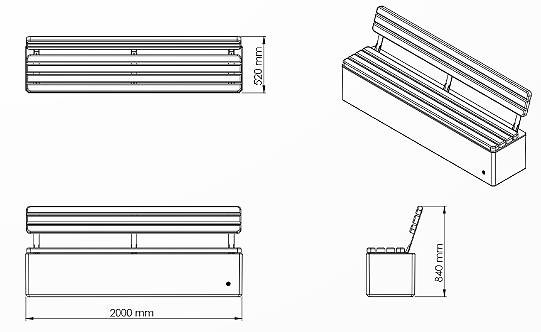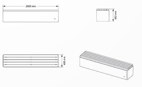Le modèle 3 est conçu pour les grands espaces ou les zones à forte affluence. Avec ses dimensions de L: 200 cm l: 52 cm H: 84 cm et son poids de 385 kg, ce modèle assure plus de confort grâce à une assise plus large. Il est particulièrement adapté aux espaces urbains où l’afflux de personnes nécessite un mobilier spacieux et confortable.