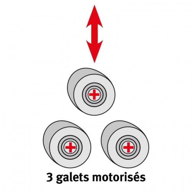 - 3 galets entraînés par motoréducteur