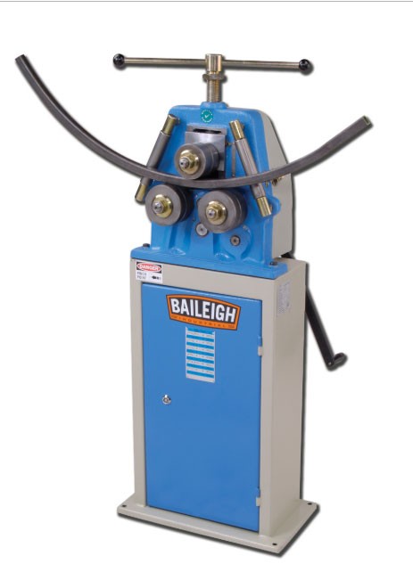 cintreuse à galets manuelle sur socle R-M10 BAILEIGH est une machine-outils de cintrage à fonctionnement manuel aisé grâce à sa manivelle actionnant les 2 rouleaux inférieurs qui entraînent les profilés, tube ou tuyau entre les 3 rouleaux.