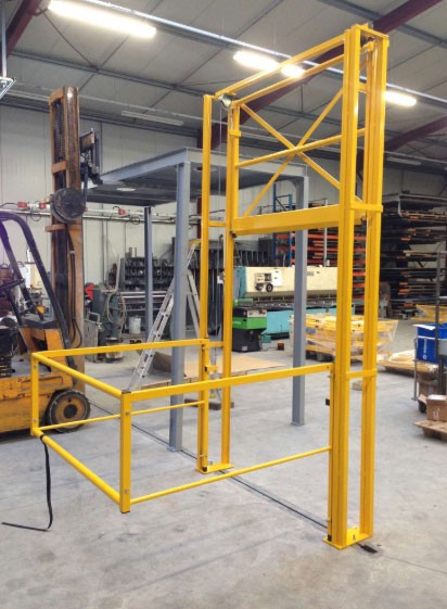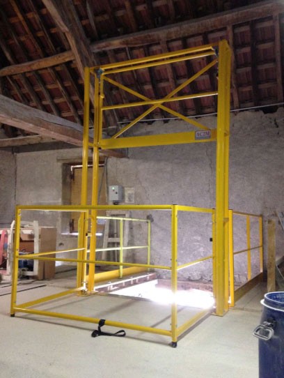 La barrière écluse coulissante verticale type SG4 est un équipement industriel constituant un sas de sécurité lors d'opérations de manutention de palettes entre différents niveaux.