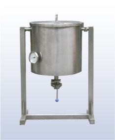 Le réservoir de levure est un récipient inox à deux enveloppes dont la partie supérieure est légèrement conique et le couvercle amovible.