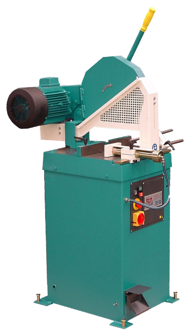 Tronçonneuse à meule avec mouvement pendulaire et tête pivotante.