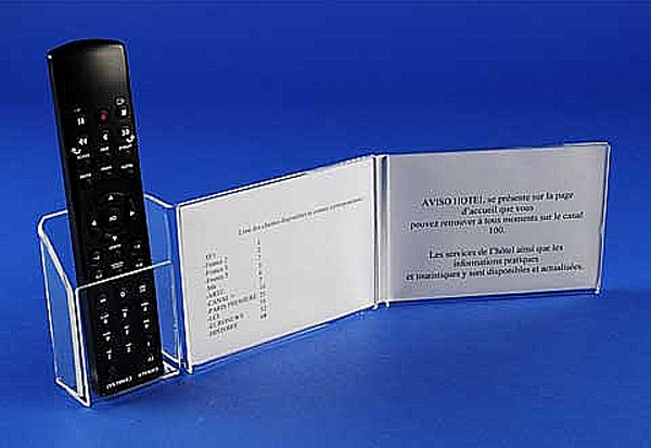 Ce support facilite l'utilisation de la télévision pour vos clients en regroupant la télécommande et la liste des chaines proposées.
