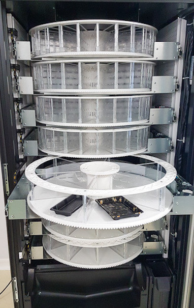 Le distributeur à plateaux tournants réfrigérés est idéal pour la mise en vente de petits condiments.