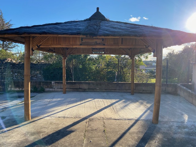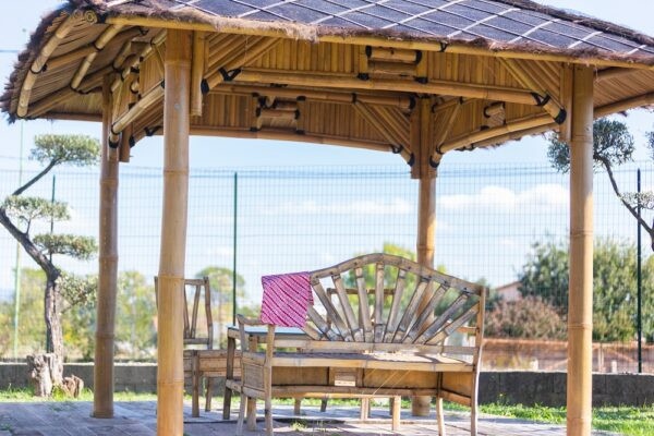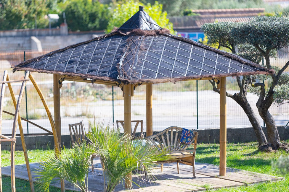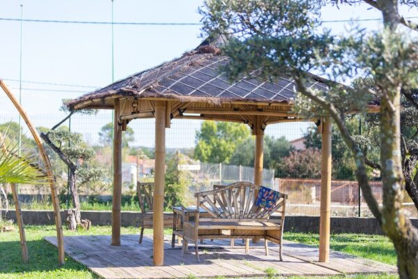 Cette tonnelle de jardin en bambou transforme votre jardin en peu de temps dans un espace chaleureux.
