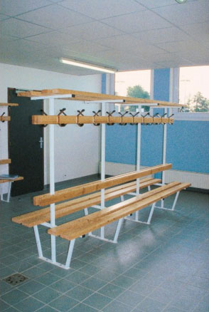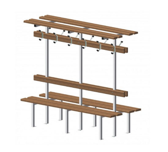 Cette banquette centrale complète est adaptée pour une installation au centre des vestiaires.