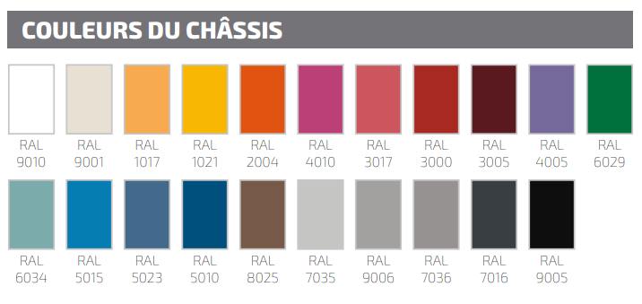 Couleur standard : gris clair RAL 7035 Autres couleurs disponibles à préciser lors de la commande (plus value de 20 %)