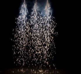 - les gerbes d'étincelles instantanées, couleur or ou argent, des jets d'étincelles qui permettent un effet lumineux de plus de trois mètres de hauteur