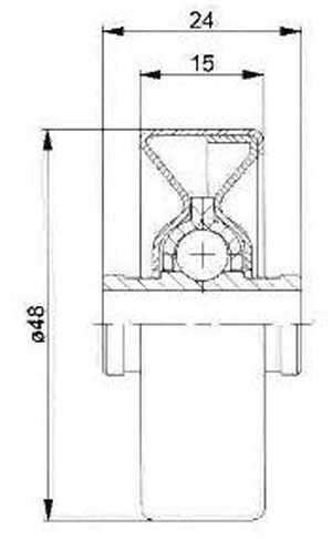 40 Galets plastique à flasque type GP3, les côtes de votre plan en ligne sont tronquées. je recherche pour un de nos client des galet en plastique bleu avec un flasque de diam. 65, un diam. de portée de 48mm de 16mm environ de largeur, avec roulement pour un axe diam. 8mm, largeur HT au moyeu 24mm