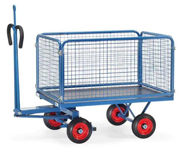Ce chars à bras est parfait pour le déplacement d'objets encombrants grâce à ses ridelles en grillage qui permettent une superposition des objets.
