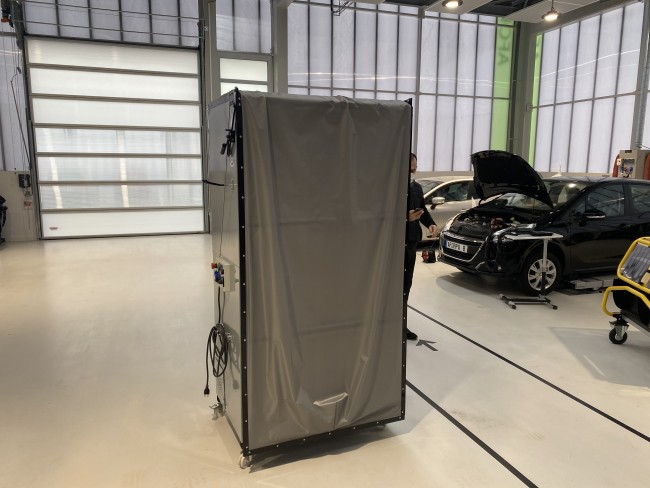 Les pièces sont placées dans la zone de travail de la cabine peinture mobile pliable et peut également être amenée dans une zone spécifique ou la voiture et placé.