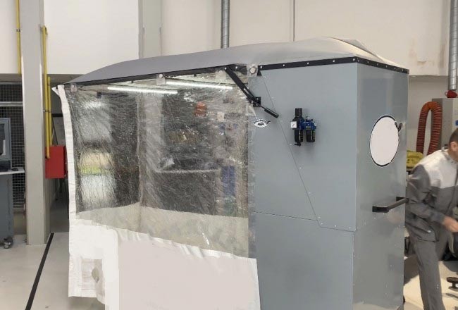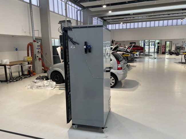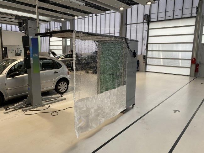 Vous avez également une économie de maintenance, puisque le changement des filtres dans la cabine mobile pliable, est très simple, et très rapide.