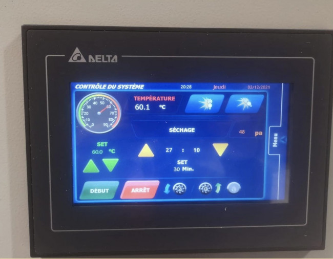 Le chauffage de l'air est assuré par un brûleur diesel ou fioul d'une capacité de 150 000 kcal / h et un échangeur en tôle d'acier inoxydable de qualité 304. Le premier démarrage et l'augmentation de la température de l'air jusqu'à 60 °C prend environ 15 minutes, selon les conditions météorologiques extérieures.