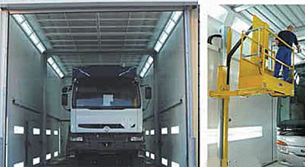 tunnels poids lourds, bien étudiés se composant de modules pour aires de préparation, ponçage, matériels d’aspiration et laboratoires de préparation des peintures, et qui s’adaptent aux poids lourds de différentes dimensions (engins de travaux publics, avions, bus, remorques, bennes, tracteurs, …).
