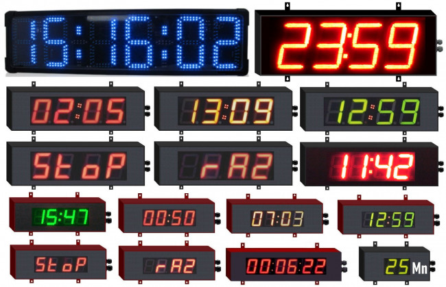 Proposés pour compter ou décompter des temps en dixièmes de secondes, en secondes en minutes ou en heures, dans diffrents formats et configurations recherchés