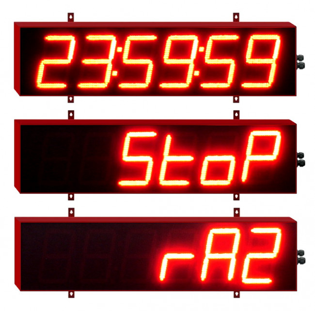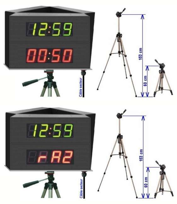 Ces afficheurs disposent en standard de 3 entrées opto-couplés (Start, Stop, et RAZ) pilotées par des contacts secs externes (non fournis), ou en option par une télécommande en radio HF