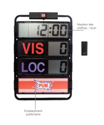 Il est adapté aux gymnases, terrains de sport et compétitions nécessitant un affichage clair et lisible à distance.