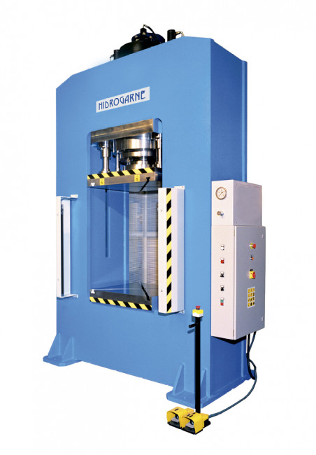 Cette presse hydraulique motorisée à arcade HIDROGARNE conserve, sous effort, un parallélisme des tables supérieure et inférieure.
