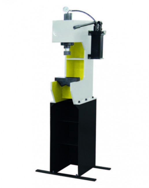 - La presse fonctionne comme une presse d'atelier, mais sa structure en col de cygne permet de travailler les pièces longues dans un espace réduit
