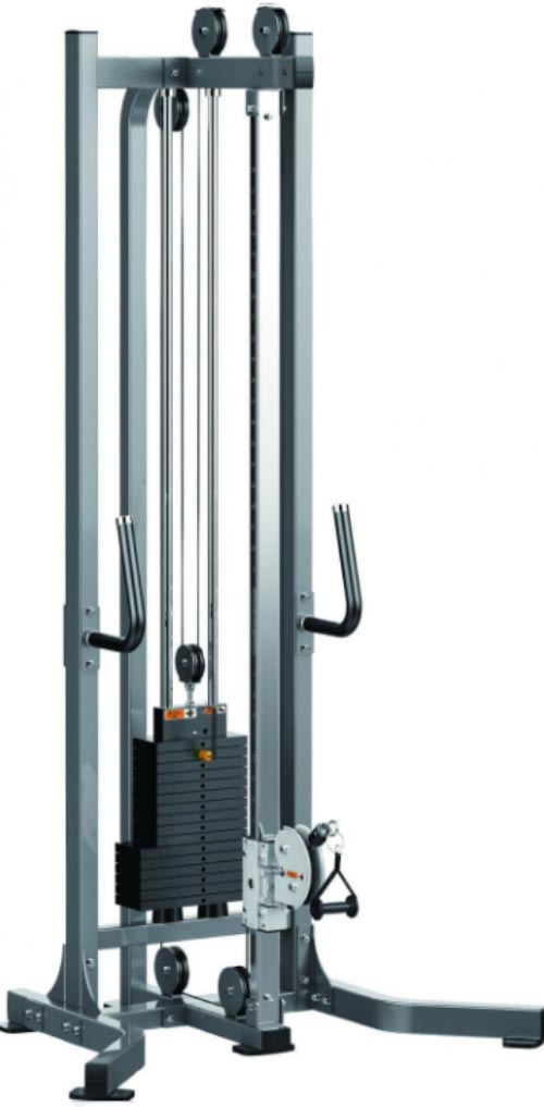 - La poulie s’ajuste sur toute la hauteur de la machine et permet de diversifier les exercices ainsi que les fibres musculaires sollicitées.